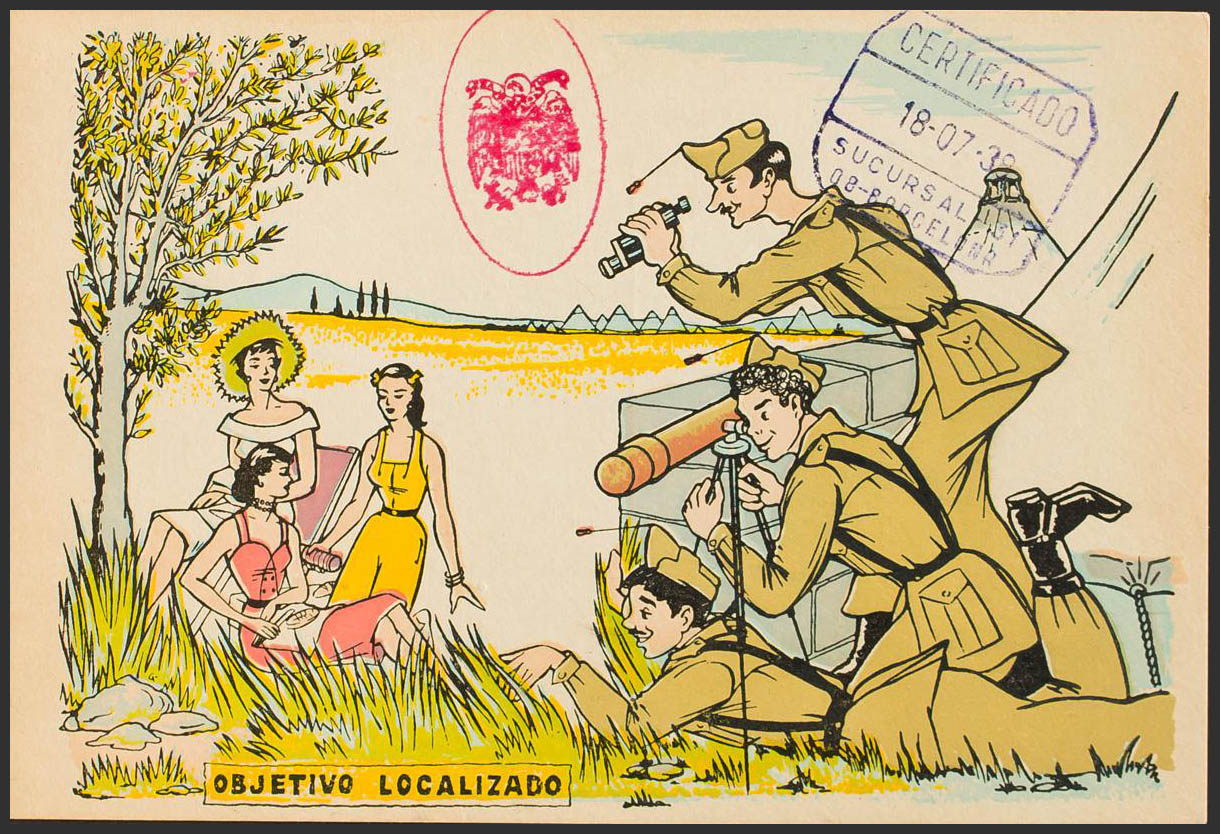 1938. Tarjeta Postal Filatélica de BARCELONA, circulada también filatélicamente. MAGNIFICA Y RARA.