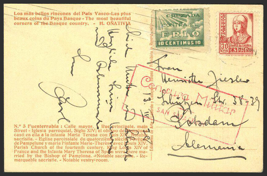 Guerra Civil. Postal Nacional. Cruzada contra el frÃo.