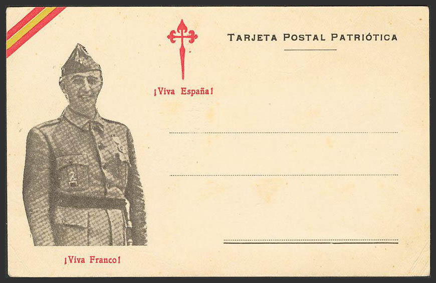 Guerra Civil. Postal Nacional. Sin circular. ¡VIVA ESPAÑA!, ¡VIVA FRANCO!. MAGNIFICA.