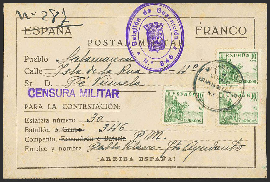 Guerra Civil. Postal Nacional. Postal militar. MAGNIFICA.