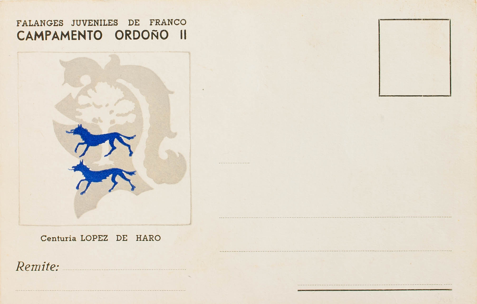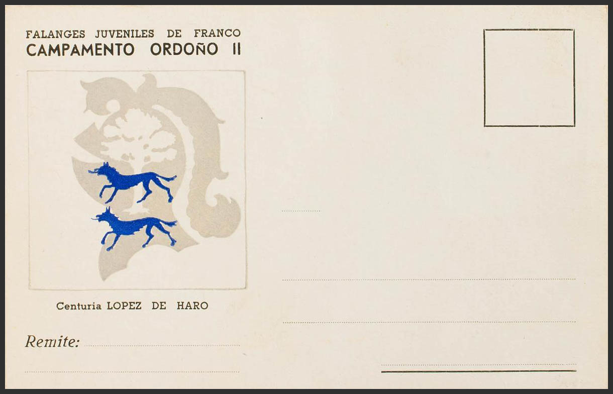 (1937ca). Tarjeta Postal Ilustrada FALANGES JUVENILES DE FRANCO. CENTURIA LOPEZ DE HARO. MAGNIFICA Y RARA.