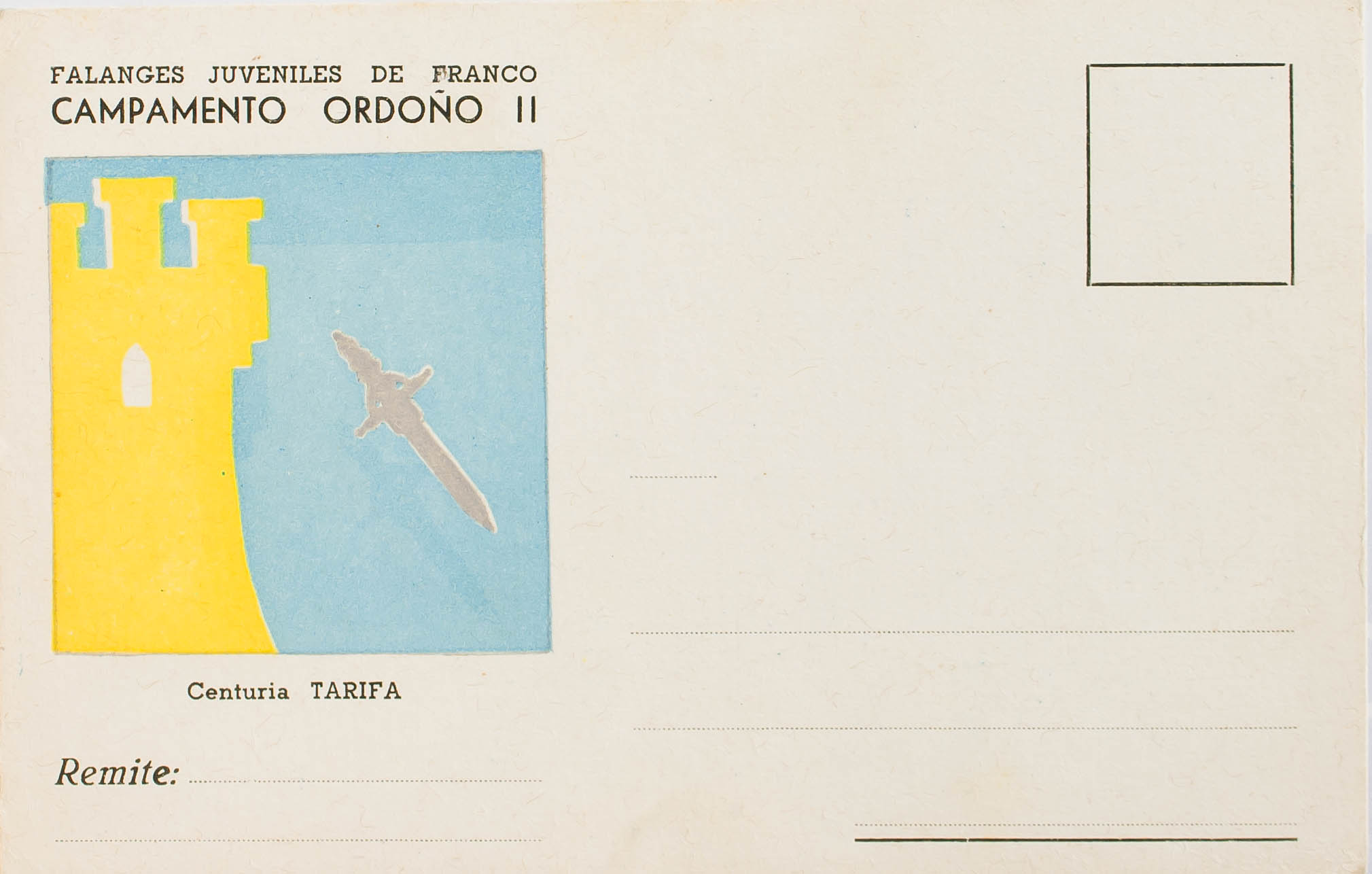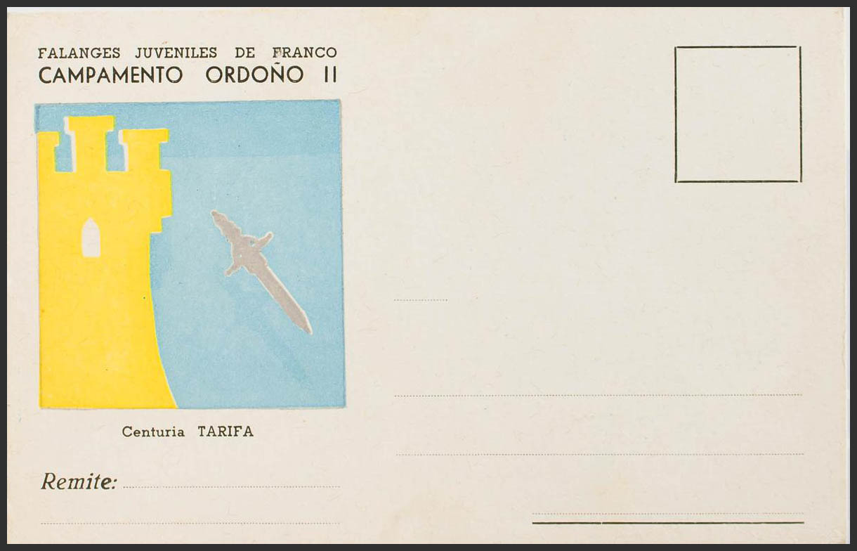 (1937ca). Tarjeta Postal Ilustrada FALANGES JUVENILES DE FRANCO. CENTURIA TARIFA. MAGNIFICA Y RARA.