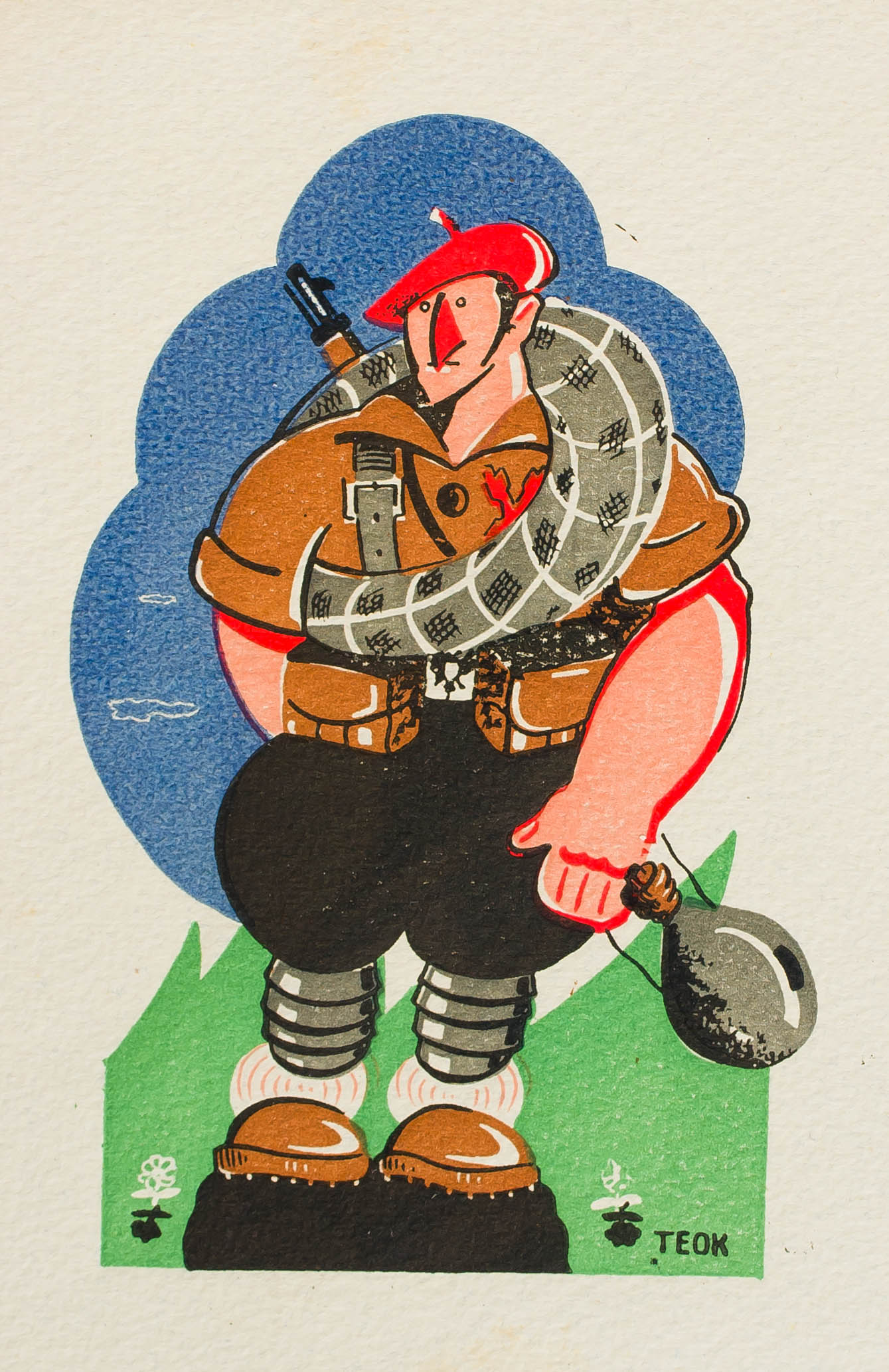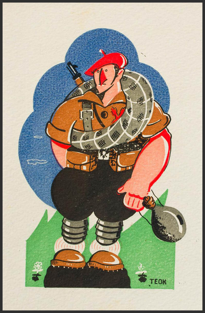 (1937ca). Tarjeta Postal Ilustrada con caricatura REQUETE (Teok). MAGNIFICA.