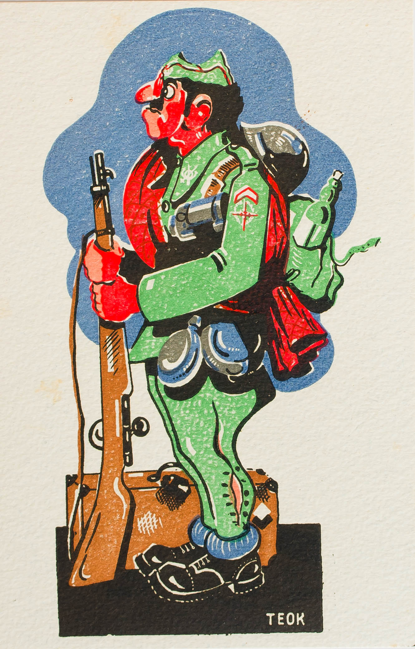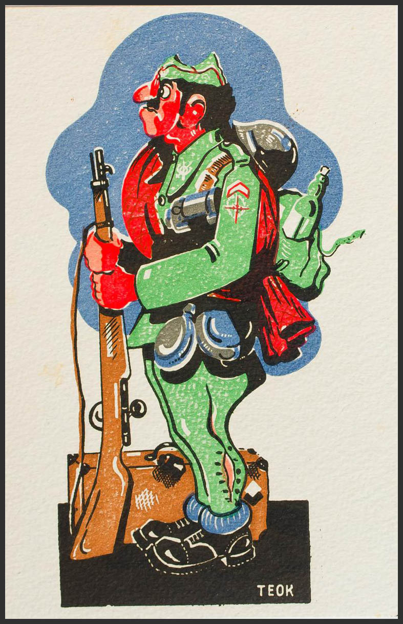 (1937ca). Tarjeta Postal Ilustrada con caricatura CABO DE LA LEGION (Teok). MAGNIFICA.