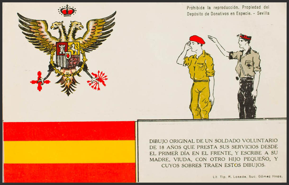 (1937ca). Tarjeta Postal Ilustrada DIBUJO ORIGINAL DE UN SOLDADO VOLUNTARIO (Tip. Losada). MAGNIFICA.