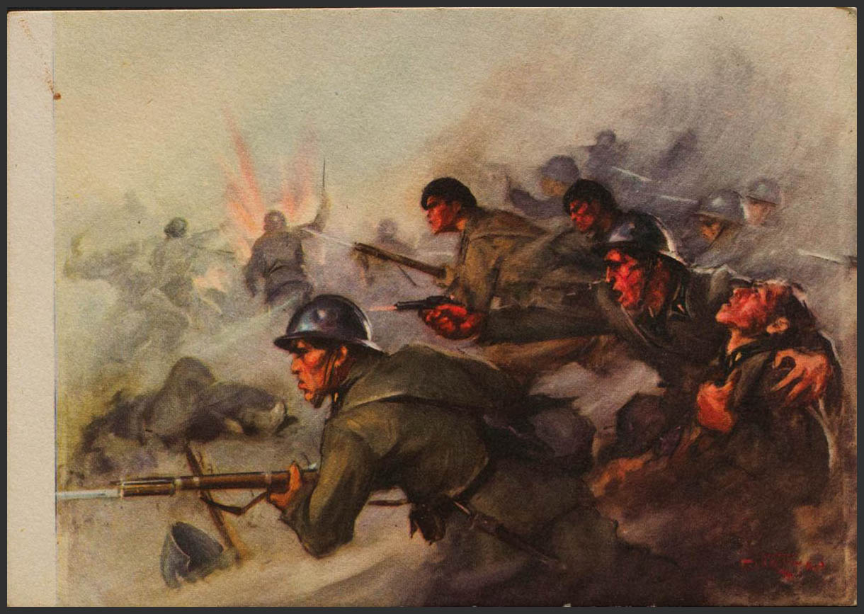 (★)1937. Tarjeta Postal Ilustrada de los Voluntarios Italianos. SERIE CARTOLINE E.M.S. "Da Guadalajara". MAGNIFICA.