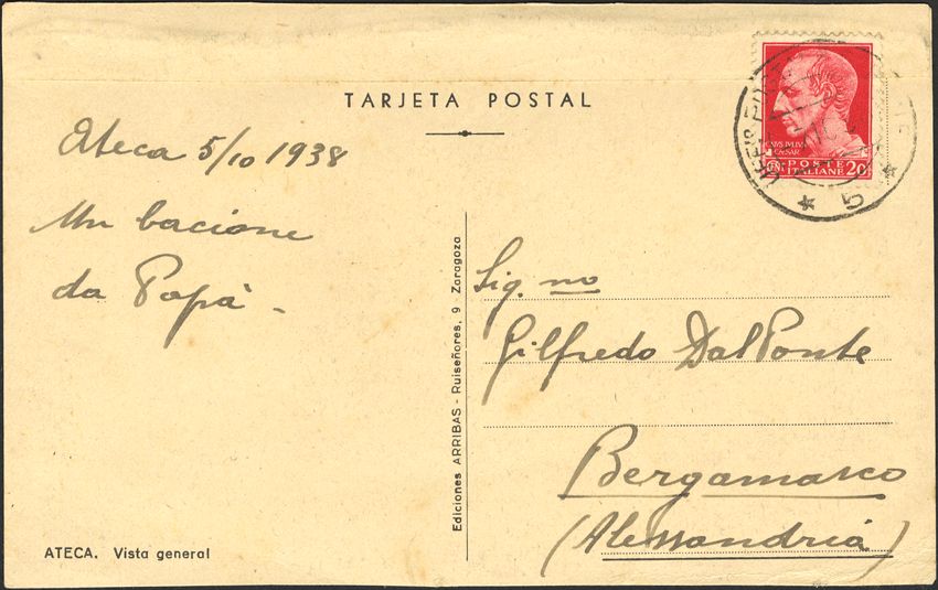Guerra Civil. Voluntario Italiano. Remitida desde Ateca. MAGNIFICA.