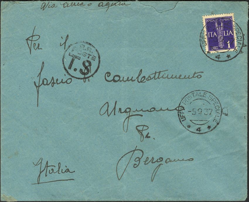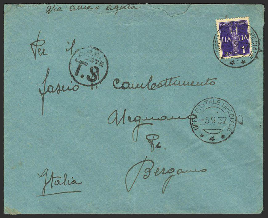 Guerra Civil. Voluntario Italiano. VÃa Aérea. Al dorso remite. MAGNIFICA.