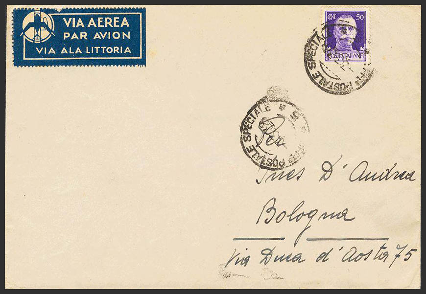 Guerra Civil. Voluntario Italiano. UFFIº POSTALE SPECIALE / 5, al dorso llegada. MAGNIFICA.
