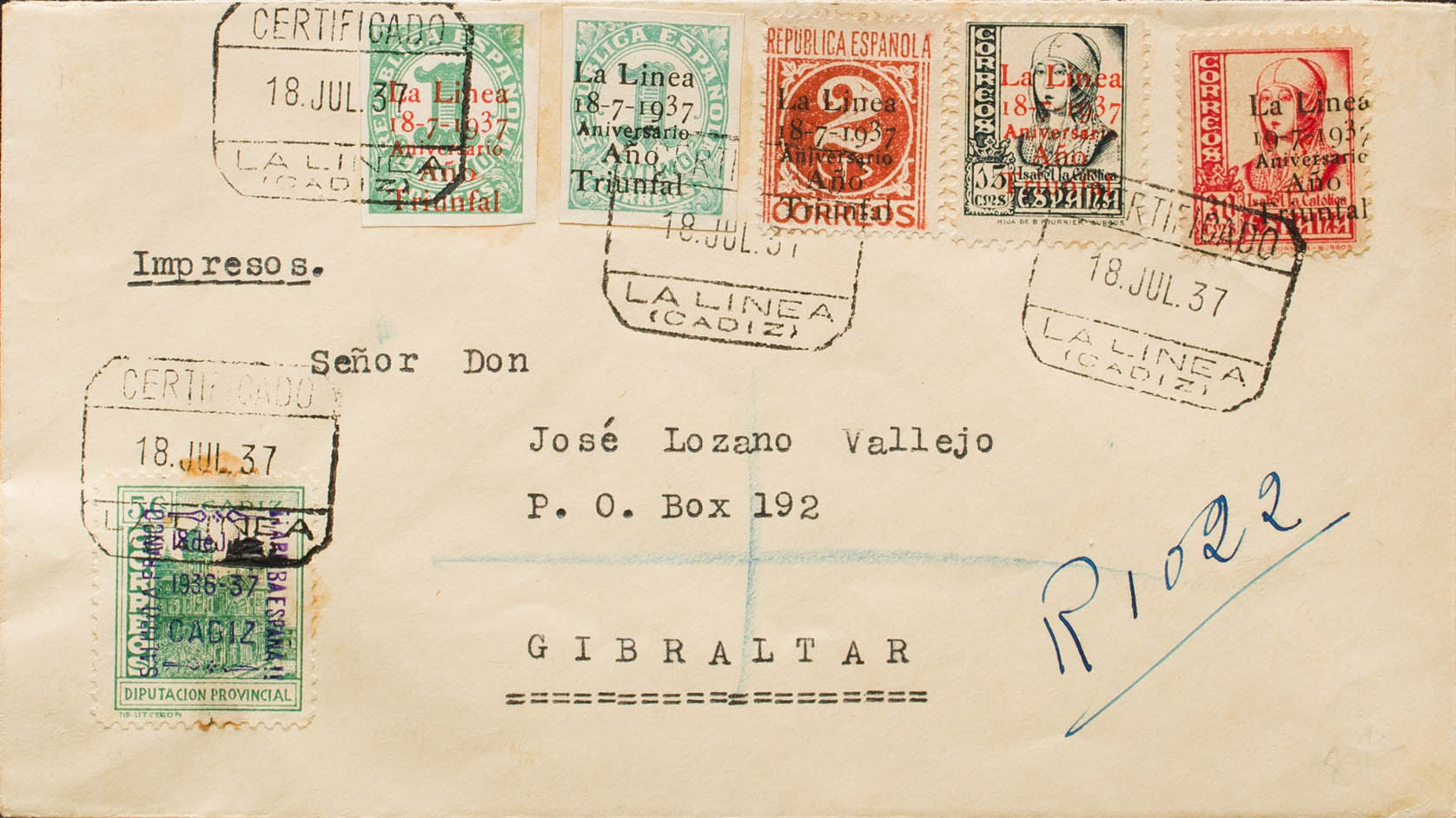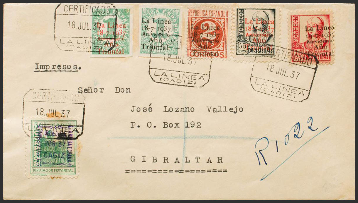 Guerra Civil. Emisión Local Patriótica. LA LINEA (CADIZ). Al dorso llegada. MAGNIFICA.
