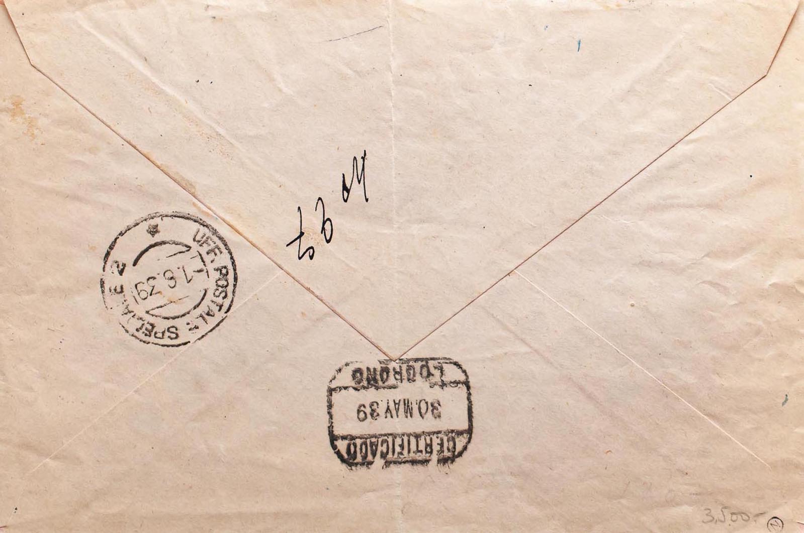 1/12. 1939. Serie completa. Certificado de LA CAROLINA a LOGROÑO, dirigida a un Comandante español del Comando Truppe Voluntarie. Al dorso fechador UFF.POSTALE SPECIALE 2 y llegada. MAGNIFICA Y MUY RARA.