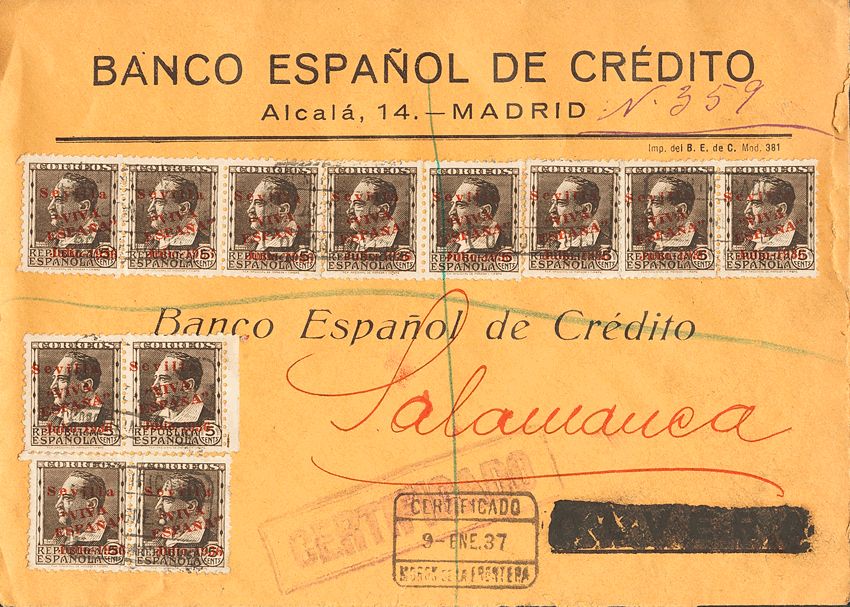 Guerra Civil. Emisión Local Patriótica. JEREZ DE LA FRONTERA. Al dorso llegada. MAGNIFICA.