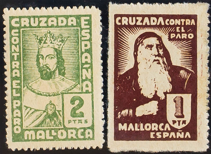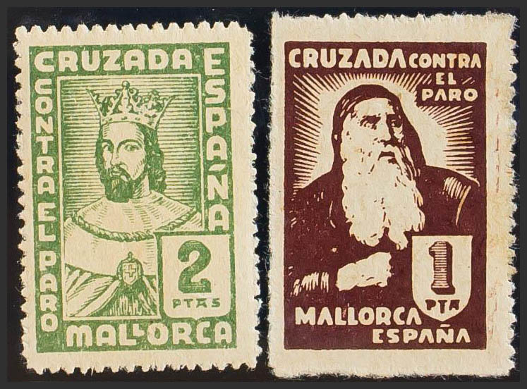 ★(1938ca). 1 pts castaño y 2 pts verde PALMA DE MALLORCA. CRUZADA CONTRA EL PARO. MAGNIFICOS Y RAROS. (Fesofi 56, 57)