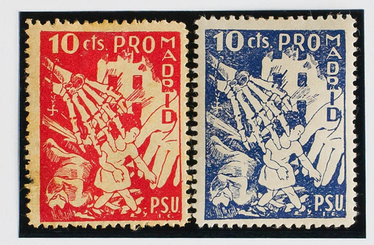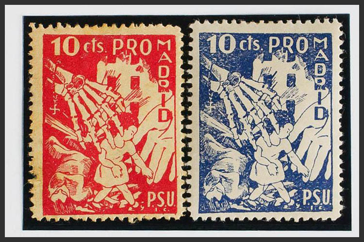(★)1937. 10 cts carmÃn y 10 cts azul. MADRID. PRO MADRID. MAGNIFICOS Y RARISIMOS. (Guillamón 829/30)
