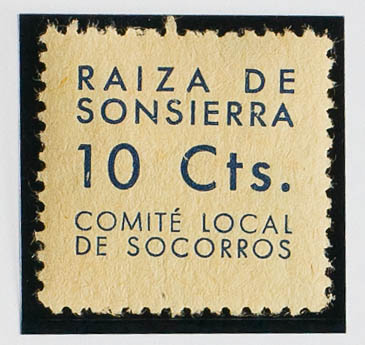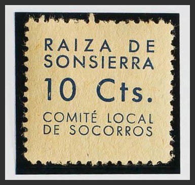 ★1937. 10 cts azul sobre amarillo. RAIZA DE LA SONSIERRA. COMITE LOCAL DE SOCORROS. MAGNIFICO Y NO CATALOGADO.