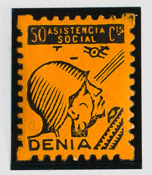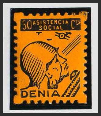 ★1937. 50 cts negro sobre amarillo. DENIA. MAGNIFICO Y RARO. (Fesofi 11)