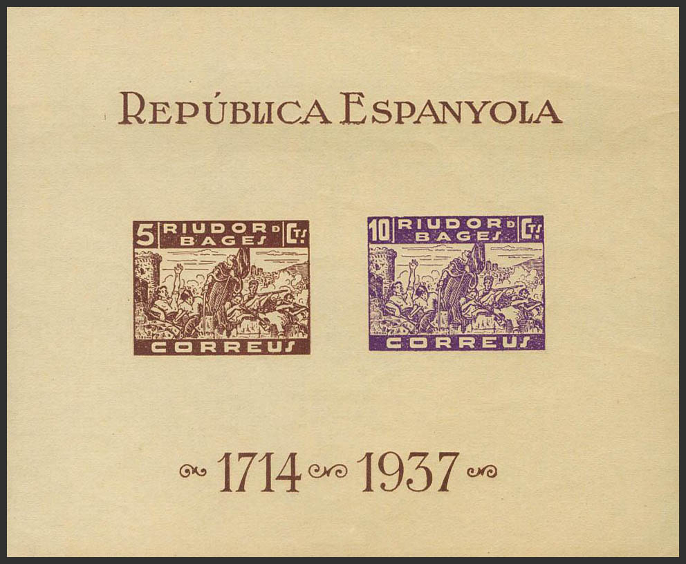 ★1937. Hoja bloque. RIUDOR DE BAGES (BARCELONA). MAGNIFICA Y RARA. (Fesofi 6 y Allepuz 22)