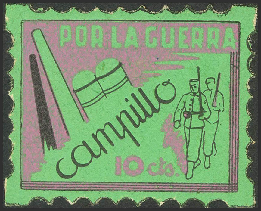 ★★1937. 10 cts violeta y negro sobre verde. CAMPILLO (TERUEL). MAGNIFICO Y RARO. (Allepuz 1)