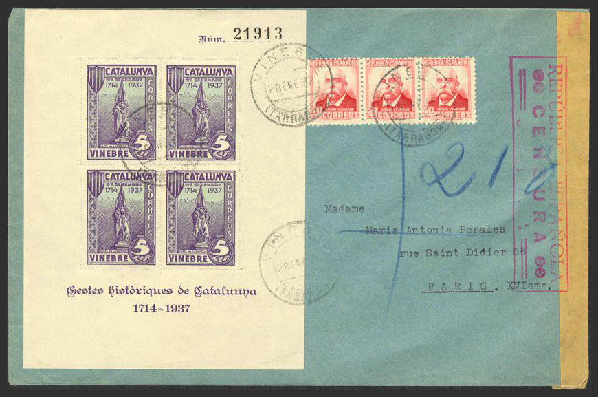 Guerra Civil. Locales. Local Vinebre. Al dorso llegada. MAGNIFICA Y RARISIMA VERDADERAMENTE CIRCULADA.