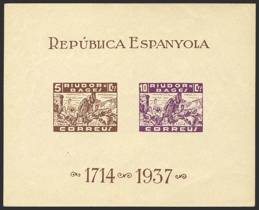 ★(1936ca). Hoja bloque. RUIDOR DE BAGES. MAGNIFICA Y RARA. (Guillamón 1160).