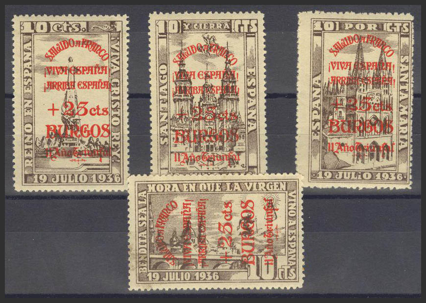 ★(1936ca). Serie completa, con sobrecarga. BURGOS. MAGNIFICA. (Fesofi 6/9).