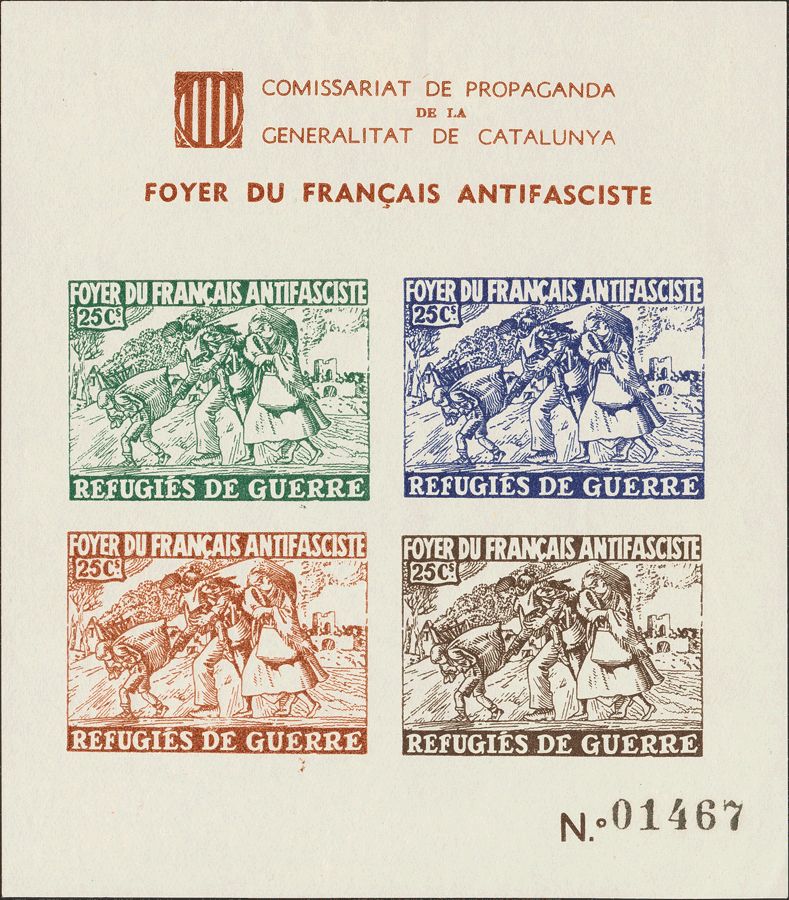★(1936ca). Hoja bloque, DENTADA y SIN DENTAR. FOYER DU FRANCAIS ANTIFASCISTE. MAGNIFICA Y MUY RARA. (Guillamón 2249/50).