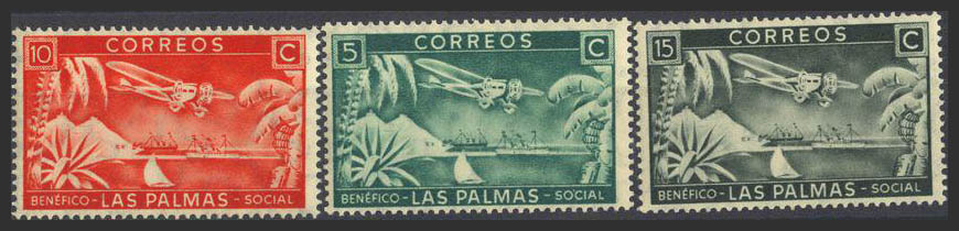 ★(1936ca). 5 cts, 10 cts y 15 cts. LAS PALMAS. MAGNIFICOS. (Fesofi 16/18).