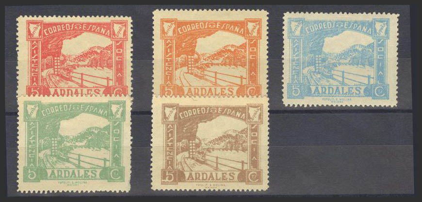 ★1937. Serie completa, excepto 5 cts gris. ARDALES. MAGNIFICA. (Fesofi 1/5).
