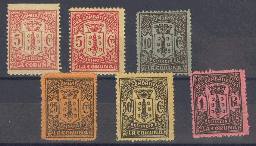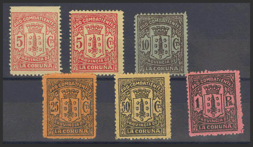 (★)1936. Serie completa, excepto 10 cts gris sobre azul. CORUÑA. MAGNIFICA Y RARA. (Fesofi 16/22).