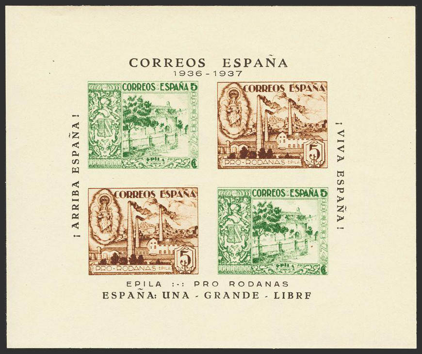 ★★/★1937. Doce hojitas bloque. EPILA. MAGNIFICAS Y RARAS. (Fesofi 5(2), 5a, 6(2), 6b, 8, 12sd, 12, 11, 11i, 12i).