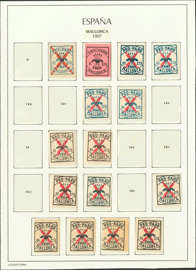 ★/(★)1937. Conjunto de sellos de las Emisiones Locales de PALMA DE MALLORCA, incluyendo valores como Fesofi 3a, 3s, 10, 11, 24s, 26/28 etc. IMPRESCINDIBLE EXAMINAR.