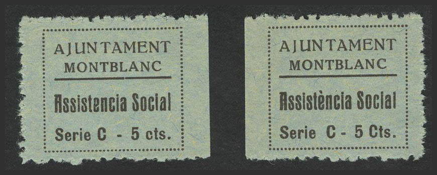 (★)1937. 5 cts, dos sellos. MONTBLANC. MAGNIFICOS. (Guillamón 888(2))