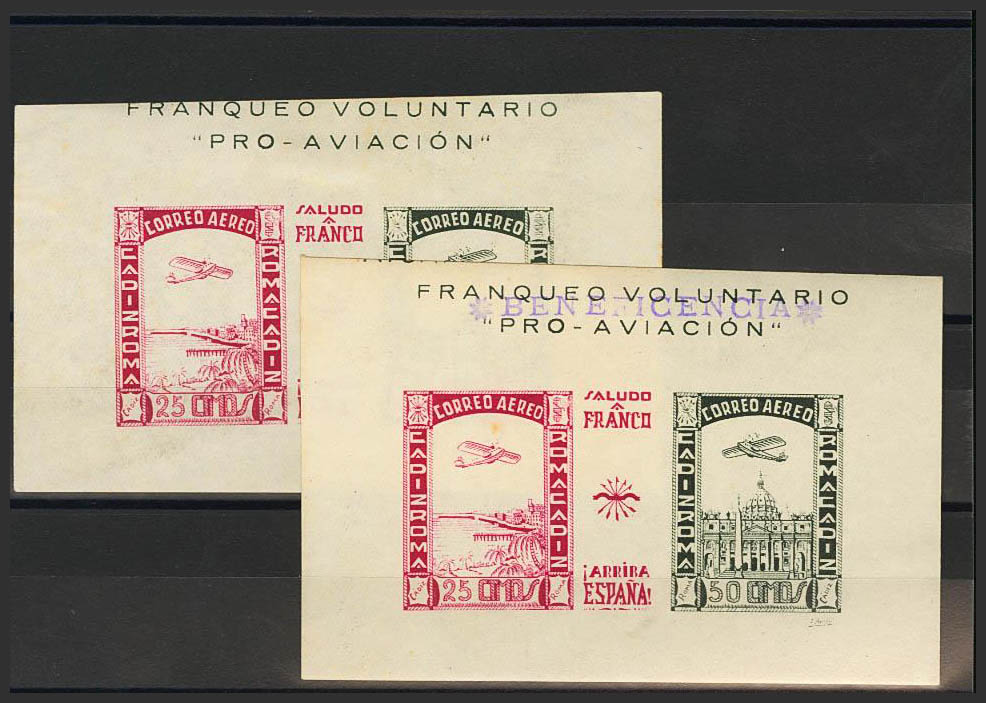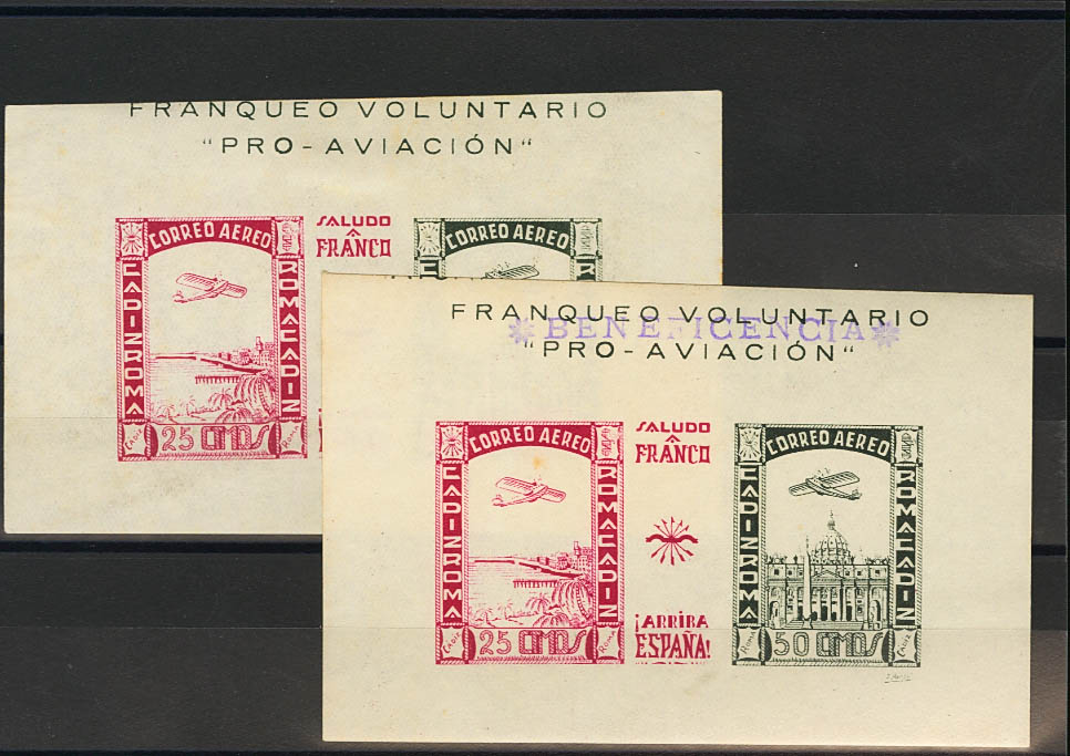 (★)1937. Dos hojas bloque, una de ellas con la marca "BENEFICENCIA". MAGNIFICAS. (Fesofi 101, 102)