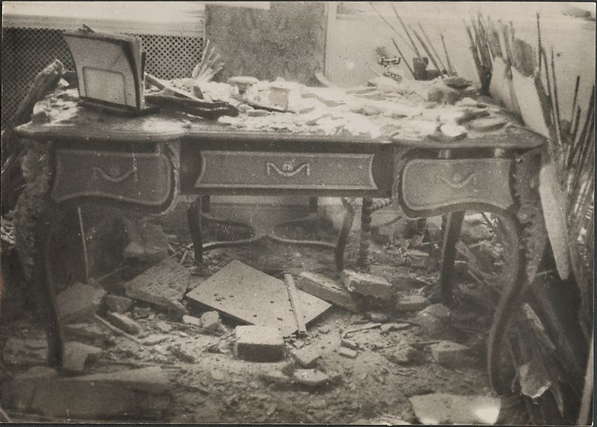 Guerra Civil. Bando Republicano. Fotografía de Prensa: "BOMBARDEO DE LA EMBAJADA DE INGLATERRA EN MADRID". Incluye texto. MAGNIFICA.