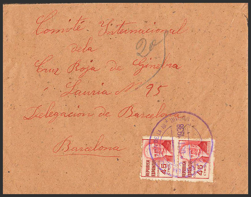 Guerra Civil. Bando Republicano. ESTAFETA DE CAMPAÑA DE LA 19º DIVISION, al dorso llegada. MAGNIFICA.