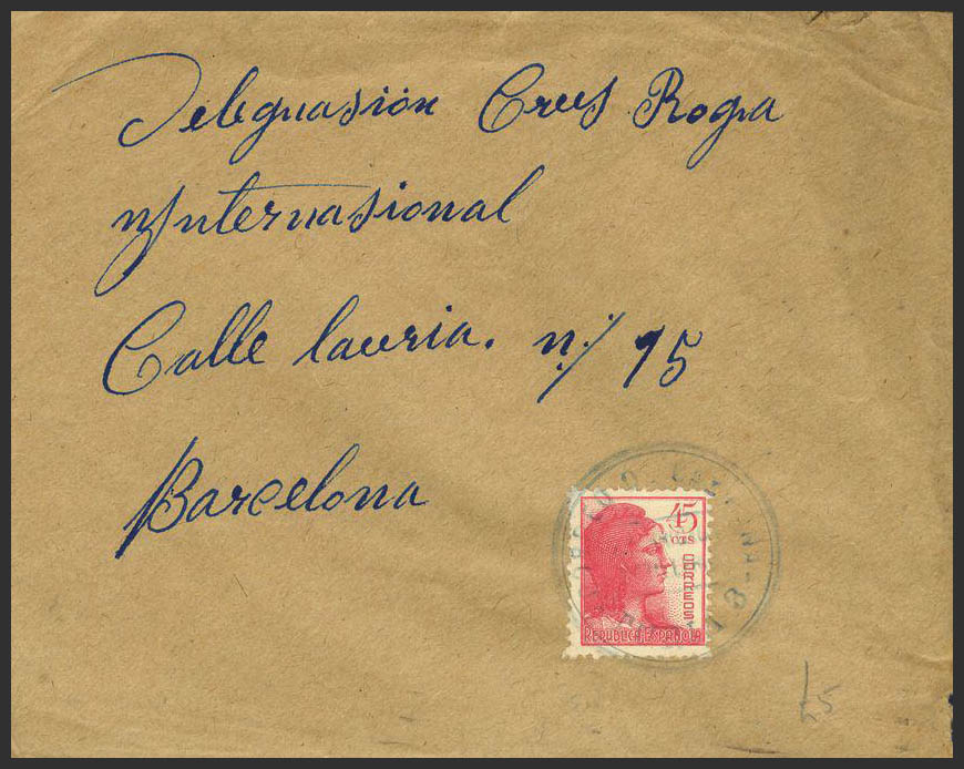 Guerra Civil. Bando Republicano. 2ª BRIGADA CABALLERIA / CORREO DE / CAMPAÑA / TURIA 3, al dorso llegada. MAGNIFICA.