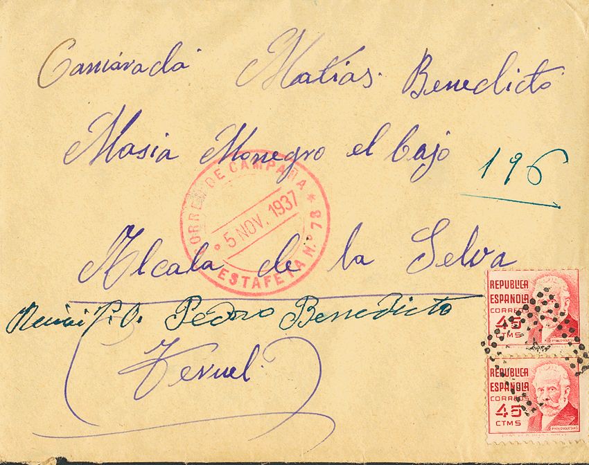 Guerra Civil. Bando Republicano. CORREO DE CAMPAÑA / ESTAFETA Nº78. MAGNIFICA.