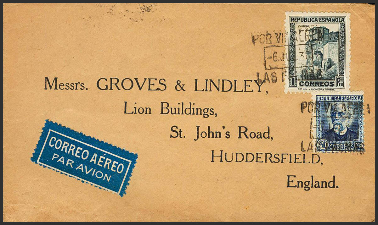 Guerra Civil. Bando Republicano Correo Aéreo. Al dorso tránsito. MAGNIFICA.