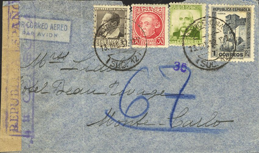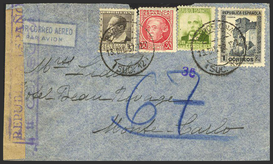 Guerra Civil. Bando Republicano Correo Aéreo. RARISIMO DESTINO.