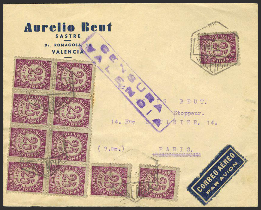 Guerra Civil. Bando Republicano Correo Aéreo. CORREO AEREO / VALENCIA. Al dorso llegada. MAGNIFICA.