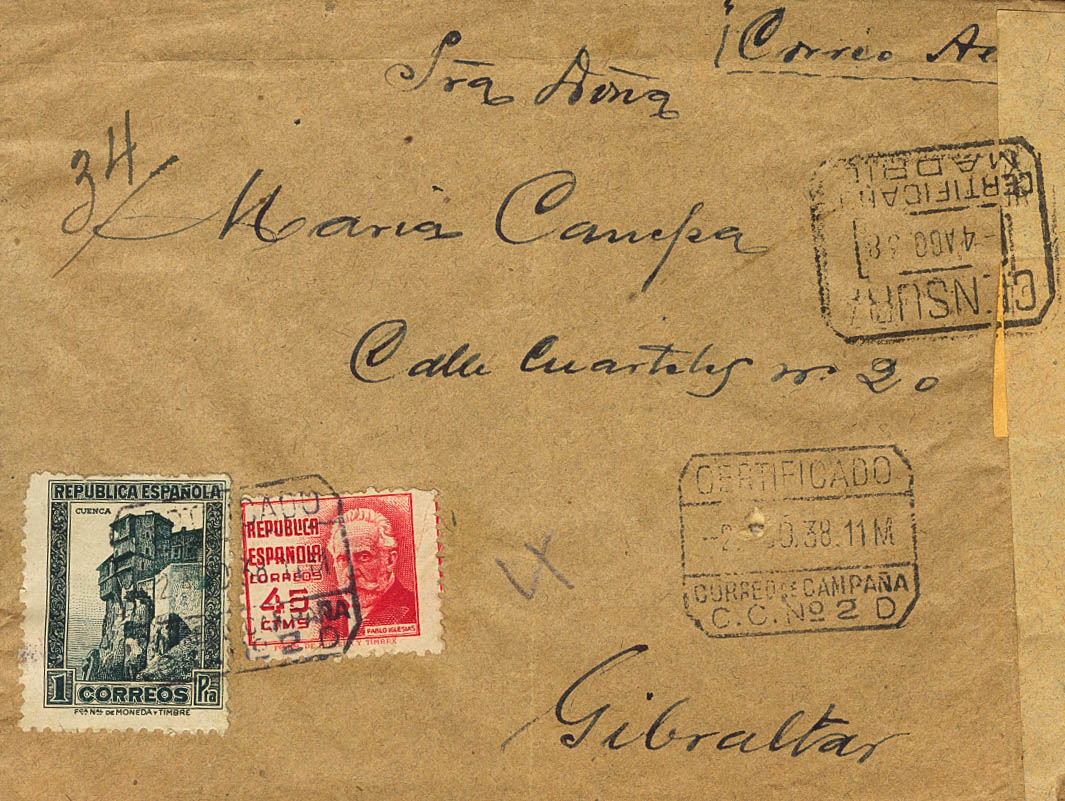 Guerra Civil. Bando Republicano Correo Certificado. Dirigida a GIBRALTAR, al dorso llegada. MAGNIFICA.