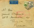 673, 682. 1937. 1 pts pizarra y 10 cts verde. VALENCIA a PARIS (FRANCIA), remitida por Fanny Bre, alias de Freda Breiman, de origen franco-romano, fue auxiliar de enfermerÃa en los hospitales de Brigadas Internacionales de Murcia, Cuenca y Barcelona. MAGNIFICA Y RARA.