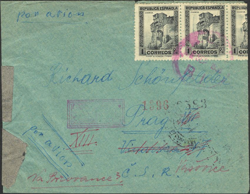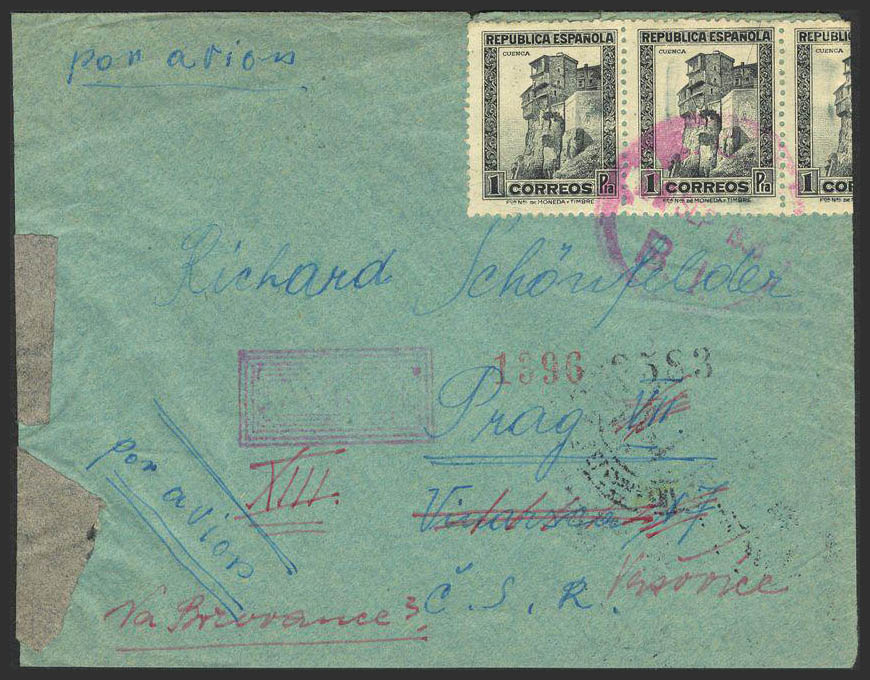 Guerra Civil. Brigada Internacional. Al dorso franqueo y diversas marcas. MAGNIFICA.