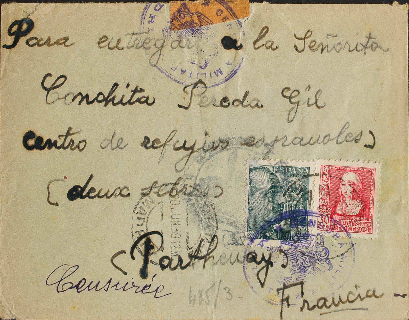 857, 870. 1939. 30 cts rosa y 40 cts verde gris. MADRID a PARTHENAY (FRANCIA). Dirigida al campos de refugiados de Parthenay, al dorso llegada. MAGNIFICA.