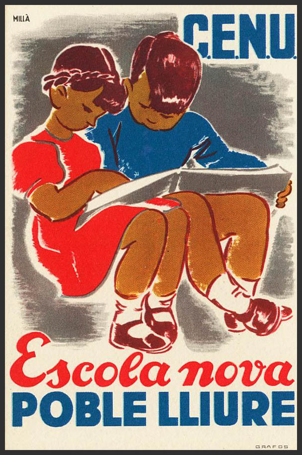 1936. Tarjeta postal del CENU, "ESCOLA NOVA POBLE LLIURE". MAGNIFICA.