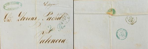 1829. GANDIA a GAND (FRANCIA). Marca GANDIA / VALENCIA, en rojo (P.E.5) edición 2004. MAGNIFICA.