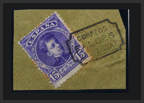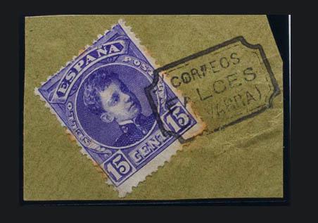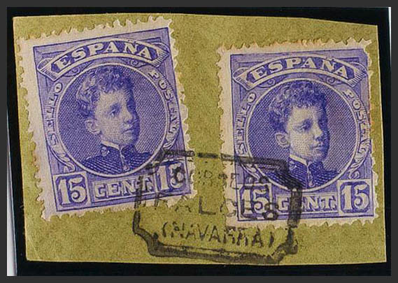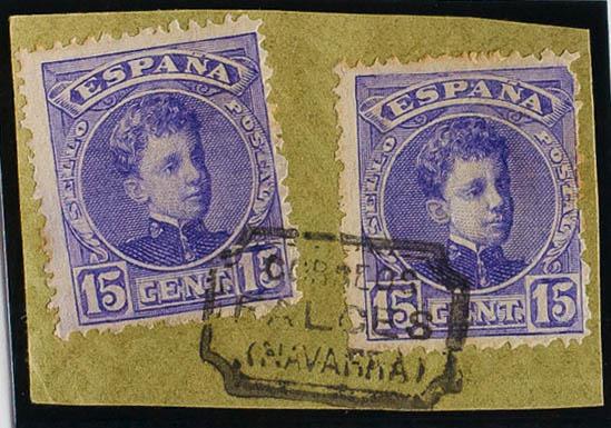 △ 246. 1901. 15 cts violeta, sobre fragmento. Matasello carterÃa NAVARRA / BETELU, en violeta. MAGNIFICA.