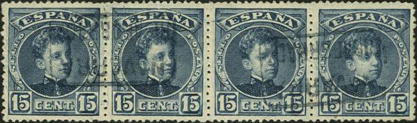244(4). 1901. 15 cts azulado, tira de cuatro. Matasello carterÃa NAVARRA / RIBAFORRADA. MAGNIFICO.