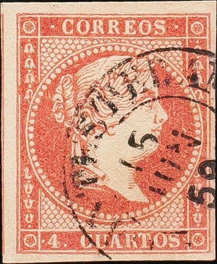 48. 1855. 4 cuartos rojo. Matasello LOS ARCOS / NAVARRA (Tipo I). MAGNIFICO.