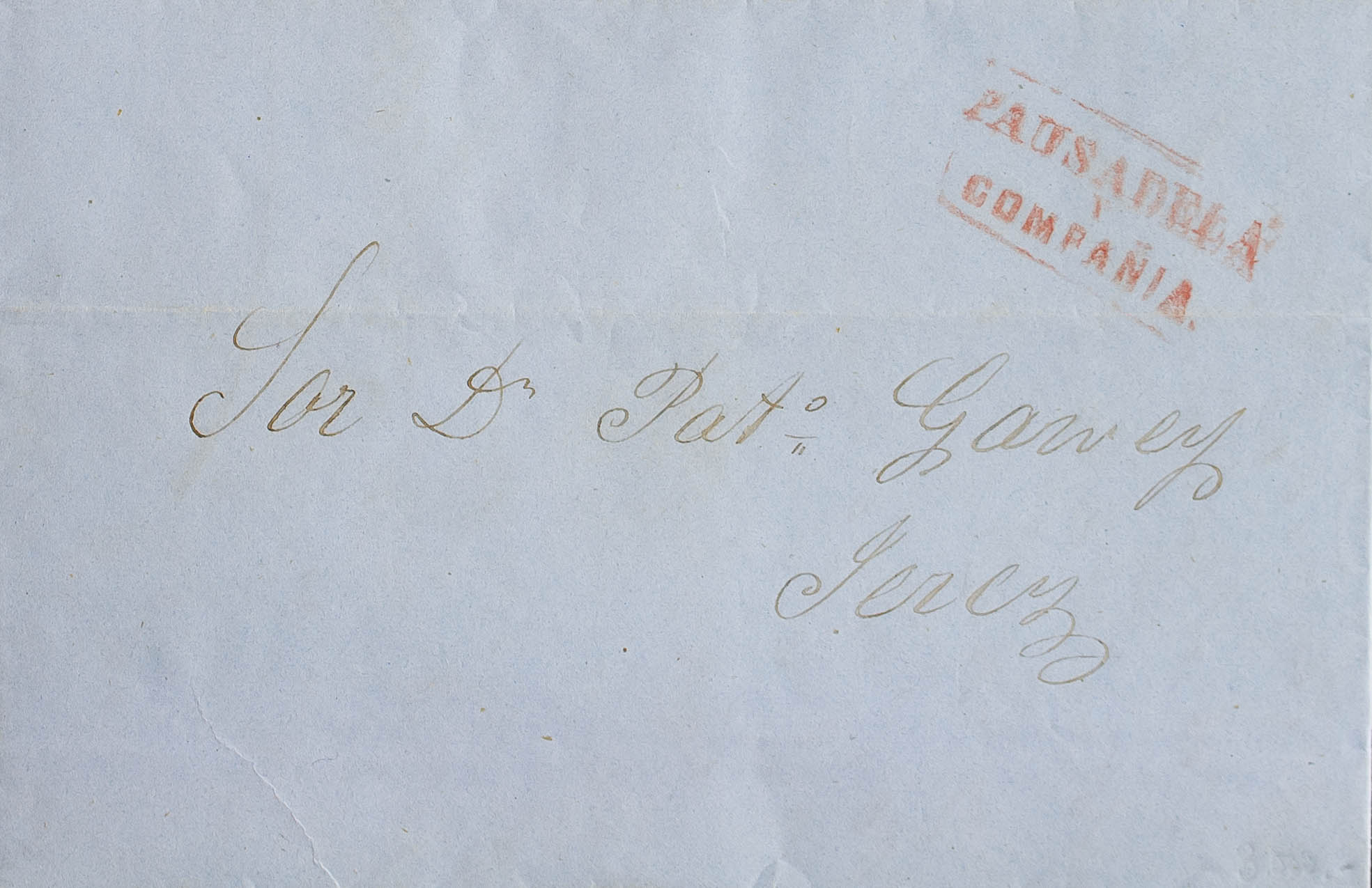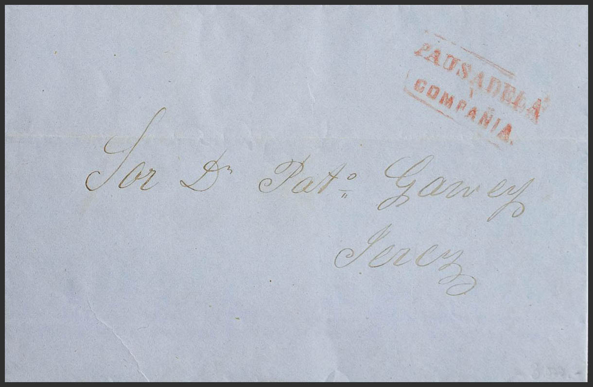 1844. CADIZ a JEREZ DE LA FRONTERA. Marca PAUSADELA / Y / COMPAÑIA, en rojo (P.E.26) edición 2004. MAGNIFICA.